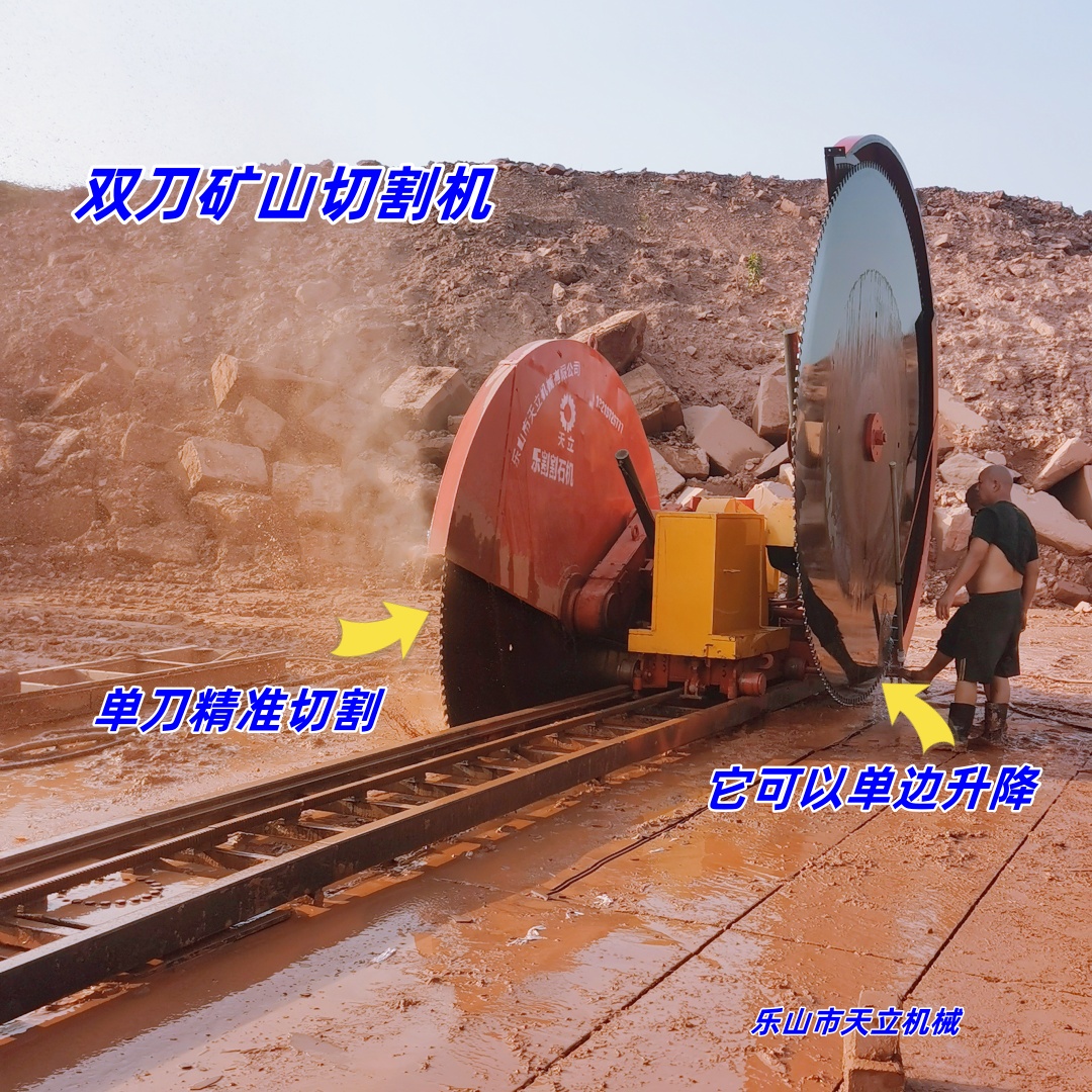 重慶砂巖礦山震撼數(shù)據(jù)!天立雙刀切割機,掛3.6米巨型鋸片與22.5米超長軌道,實現(xiàn)石材高效開采。設備以雙刀協(xié)同切割,單刀靈活切換,日均10小時完成500米切割量,切割深度達1.6米。