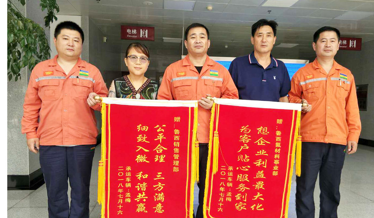 ? ? ? ?7月30日,東阿明鑫物流公司車輛負責人王長義、孟梅來到魯西集團,激動地將印有“公平合理 三方滿意 細致入微 和諧共贏”、“想企業利益最大化 為客戶貼心服務到家”字樣的兩面錦旗送到銷售管理部物流管理人員李登旭和氟材料事業部銷售經理楊先旗手中,連聲感謝。并向記者講述了一則魯西集團員工公平公正妥善處理虧噸事件的故事。