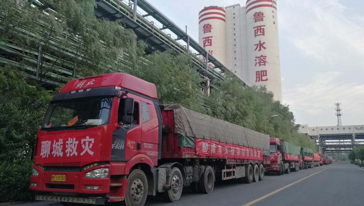 摘要:9月1日,魯西集團接到聊城市委市政府采購救災物資需求后,集團黨委迅速部署,化肥事業部全員上下高度重視,緊急協調相關部門,做好計劃下達,安排物資生產發運。當天下午,8輛滿載共計350噸高塔硝硫基復合肥的大貨車整齊地排成一列,車身懸掛著“聊城市支援濰坊救災物資”條幅