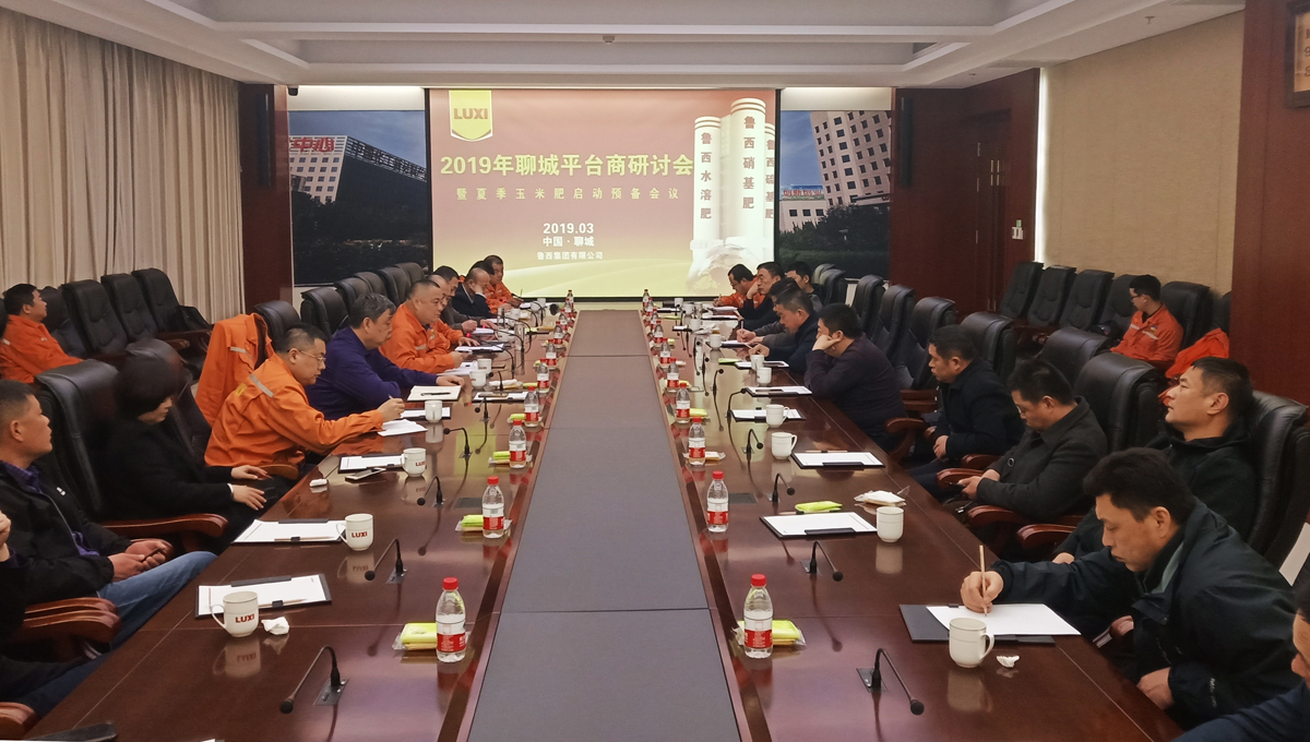 ? ? ? 近日,2019年聊城平臺商研討會暨夏季玉米肥啟動預(yù)備會議在魯西集團(tuán)召開,來自聊城八大縣區(qū)18名核心經(jīng)銷商參加了會議。魯西集團(tuán)化肥事業(yè)部副部長王新昌主持會議。