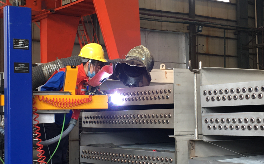 在設(shè)備制作現(xiàn)場(chǎng),員工們正在熱火朝天的忙碌著。有的在彎制蒸發(fā)冷管束,有的在焊接蒸發(fā)冷箱體,有的在焊接蒸發(fā)冷管箱管頭……。記者現(xiàn)場(chǎng)采訪了一名焊工孟麗娟,她告訴記者:“通過(guò)實(shí)施定量定價(jià)小段包工,我原來(lái)每天焊接蒸發(fā)冷管箱230個(gè)管頭,現(xiàn)在焊接300個(gè)左右,工作效率明顯提高了,工資收入增長(zhǎng)了,干勁更足了?!?