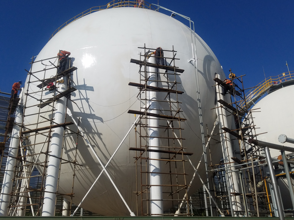 據(jù)了解,該企業(yè)重大危險(xiǎn)源罐裝站球罐的防腐刷漆工作,歷年來都是外部單位負(fù)責(zé)承包,魯西集團(tuán)黨委書記、董事長(zhǎng)張金城在季度工作會(huì)議上提出“能不花的堅(jiān)決不花,能自己干的自己干,自己干比花錢讓外邊干干的還要好”的工作要求,氟材料事業(yè)部精心策劃,合理抽調(diào)人員,成立了架桿扎設(shè)突擊隊(duì),從基礎(chǔ)業(yè)務(wù)開始學(xué)習(xí),制定了嚴(yán)密的施工方案。
