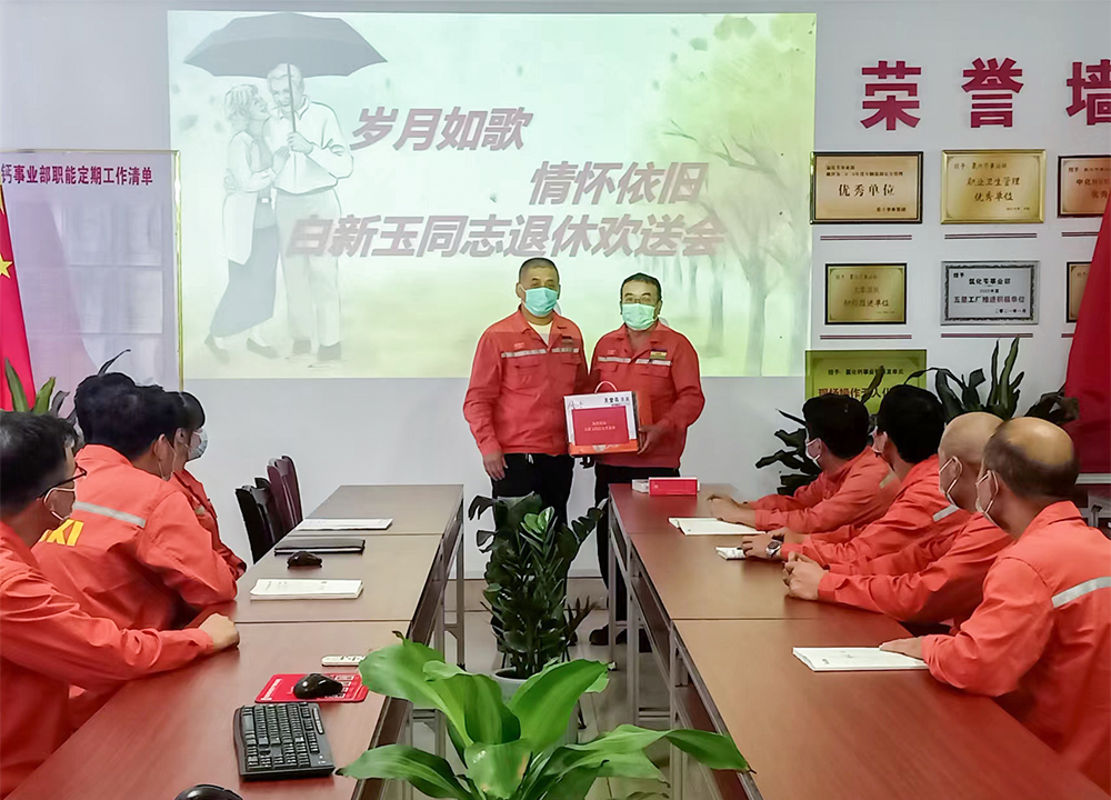 近日,在氯化鈣事業(yè)部會(huì)議室,一場(chǎng)有溫度有熱度的退休員工歡送會(huì)正在如火如荼的開(kāi)展著。“我是1988年6月28日來(lái)到魯西參加工作,到現(xiàn)在已經(jīng)有34年了,在這個(gè)期間我干過(guò)操作工,當(dāng)過(guò)主任,廠區(qū)的角角落落我走了不知道多少遍,一起工作的同事?lián)Q了一批又一批,這幾十年可以說(shuō)是一半的時(shí)間都在廠子里,看著企業(yè)一步步發(fā)展壯大,由衷的感到高興,雖然前段時(shí)間已經(jīng)做好了退休準(zhǔn)備,現(xiàn)在要離開(kāi)企業(yè)了,心里還是很不舍得……”在歡送會(huì)現(xiàn)場(chǎng),退休職工白新玉回想起在廠工作的日日夜夜有些哽咽。事業(yè)部對(duì)白新玉同志多年來(lái)為企業(yè)做出的貢獻(xiàn)表示感謝,并為其贈(zèng)送紀(jì)念品,同事們也紛紛送上祝福。