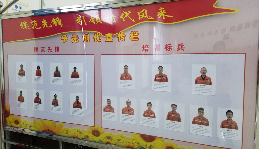 為提高員工的操作技能,氟材料事業(yè)部每月對(duì)員工再教育進(jìn)行評(píng)比,首先是在每個(gè)班組評(píng)選“優(yōu)秀培訓(xùn)師”,其次是每個(gè)班組根據(jù)員工的學(xué)習(xí)成績(jī)、綜合表現(xiàn)、實(shí)操驗(yàn)證等幾個(gè)維度,評(píng)選“優(yōu)秀學(xué)員”,每月將評(píng)選出的“優(yōu)秀培訓(xùn)師”和“優(yōu)秀學(xué)員”的照片貼在主控室“爭(zhēng)先創(chuàng)優(yōu)宣傳欄”內(nèi),這一活動(dòng)的開(kāi)展,大大地激發(fā)了廣大員工的學(xué)習(xí)積極性,學(xué)習(xí)成績(jī)也有了很大的進(jìn)步,綜合學(xué)習(xí)成績(jī)比原來(lái)有了明顯的提高,個(gè)人最低成績(jī)提高了35分。爭(zhēng)先創(chuàng)優(yōu)宣傳欄成了氟材料事業(yè)部最典型、最直接、最直觀的思想教育教材,引導(dǎo)員工爭(zhēng)相努力學(xué)習(xí)業(yè)務(wù)知識(shí),有效地助推了綜合技能的提升。