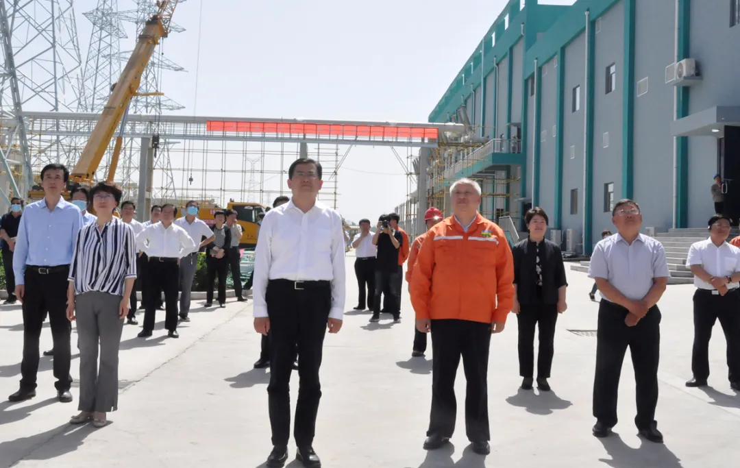 在魯西集團輸變電工程項目建設現場,聽取了集團黨委書記、董事長張金成關于輸變電工程項目建設情況、集團去年的運營指標、今年1-5月份的生產運營情況、重點任務的完成情況以及與中化的合作情況匯報。