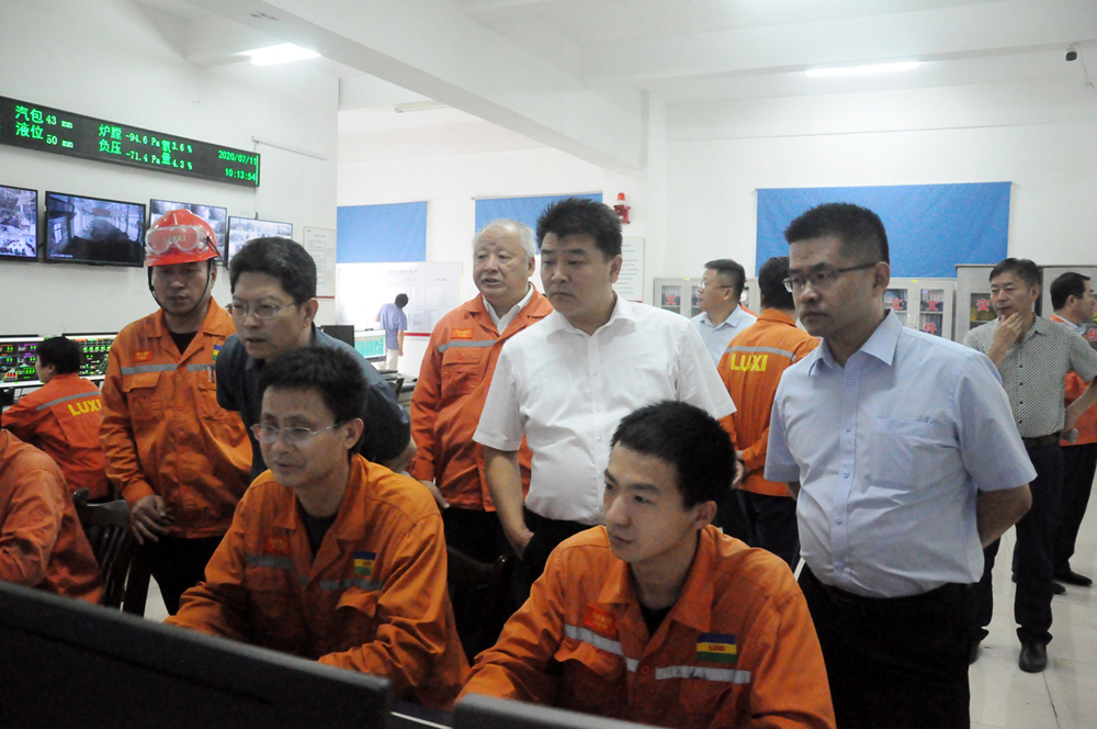 隨后領導一行參觀了動力裝置、氣化爐裝置、固危廢綜合處置裝置、廢水零排放裝置、重型裝備廠房、老舊裝置、室外實訓基地和外電引入工程項目等。詳細了解了能源替代的采購、儲存、使用情況,氣化爐和鍋爐的設備改造和工藝運行指標的調整情況。