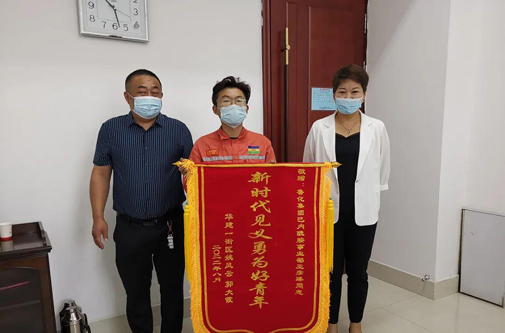 9月1日上午,家住華建壹街區的姚女士和郭先生帶著一面錦旗來到魯西集團商務交流中心,急切的尋找見義勇為的魯西員工。這兩位家長告訴接待人員,他們幾經打聽才知道救了孩子的好人,就是魯西己內酰胺事業部的王彥臻。當王彥臻見到了兩位家長,在感謝聲中,大家才了解了事情經過。