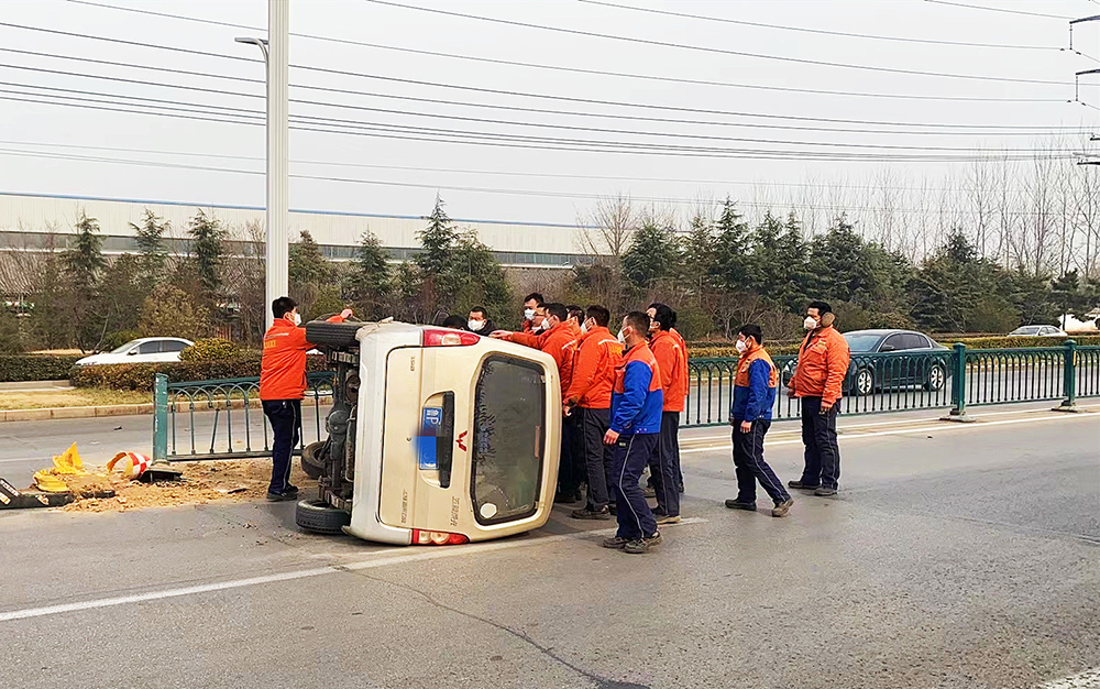 12月20日,魯西集團下屬單位第七工程事業部門口就發生一樁驚悚而又讓人感動的事件。此時臨近中午,正值員工就餐時間,只聽“咣”的一聲巨響,一輛面包車疾馳撞向了道路隔離墩,車輛瞬間發生側翻。此時門衛執勤人員魏慶闊發現情況后,第一時間召集了準備就餐的干部、員工十余人趕赴車禍現場,迅速打開主駕駛車門,此時司機因受到驚嚇還未緩過神來,身體被安全帶和車座卡住,前來營救的員工協助司機解除障礙,并確認司機意識和身體狀況后,及時將司機從側翻車輛內救出。此時正值中午下班高峰期,如果當時不能及時將司機救出,一旦發生其他車輛追尾,將釀成更加嚴重的后果。事后司機對公司見義勇為的行為既感動又感謝,并向參與救援的魯西員工深深地鞠躬致謝。
